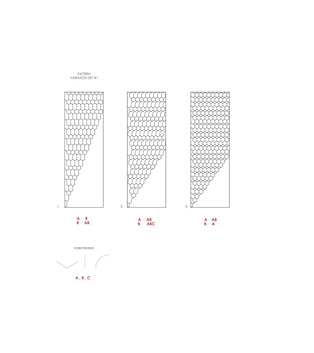 In this project three different L-System as a method of producing patterns. These patterns are translated into panels or louvers for light filtration and shading. These three L-System rule sets use Python to create pattern variations that are being applied to a south facing facade.